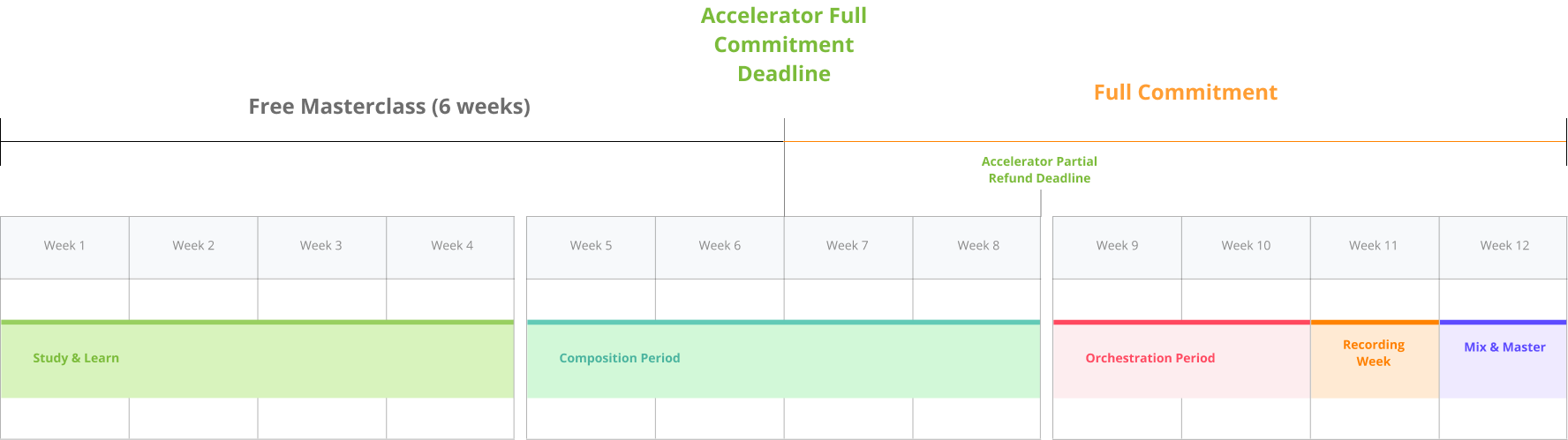 ScoreSmiths provides a comprehensive learning experience with over 9 hours of engaging video lectures, assignments, partnerships with educators, and virtual and Hollywood accelerators. Our training can significantly advance your skills as a composer in a short amount of time, offering valuable insights and practical experience with the latest industry tools and techniques.